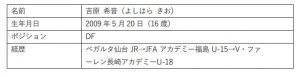 吉原 希音選手「育成年代応援プロジェクト JFA アディダス DREAM ROAD」FCバイエルンユースカップU16参加のお知らせ