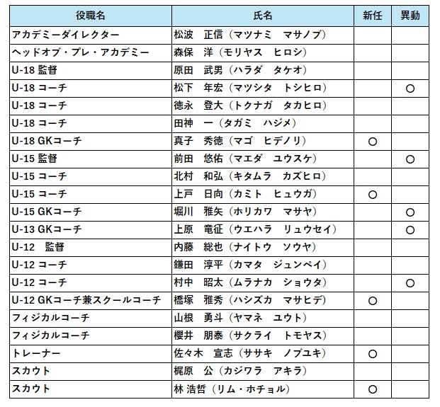 2026シーズンアカデミースタッフ新体制のお知らせ