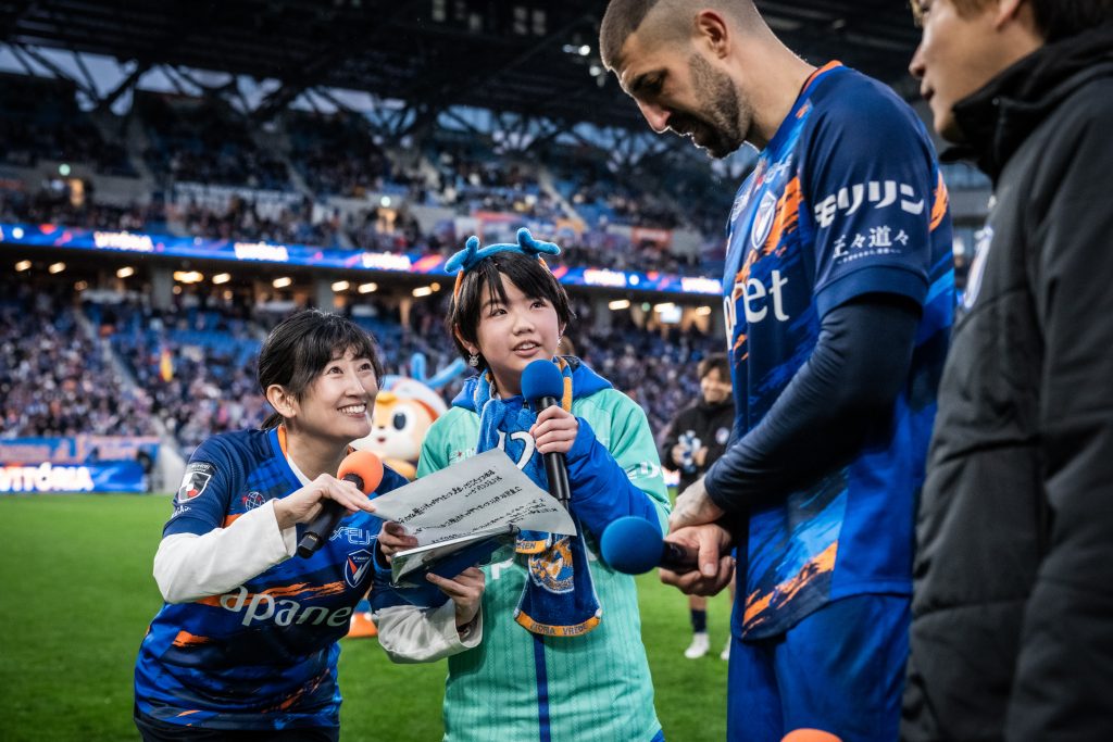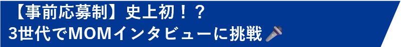 通常、小学生以下のみなさまを対象に募集している勝利時のMOM選手インタビューを3世代で挑戦いただきます!