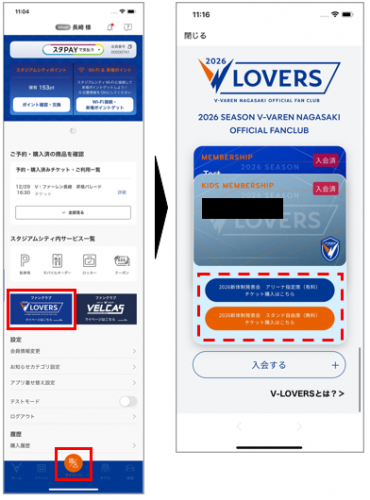 ご入場にはチケットの取得が必須となりますのでスタジアムシティアプリV-LOVERSマイページよりご購入・取得をお願いいたします。