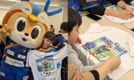 ウォーミングアップ前に選手からサインボールのプレゼント