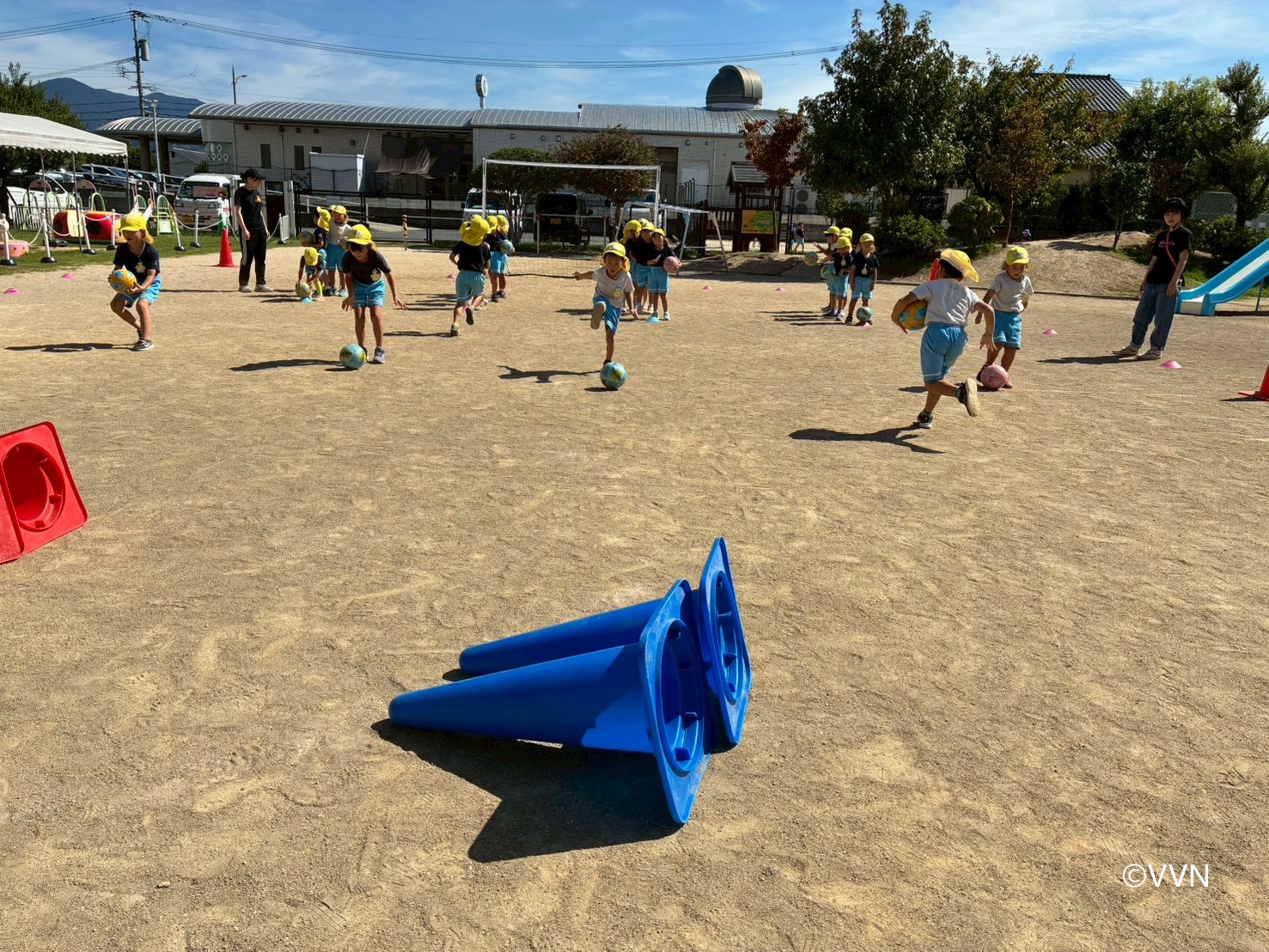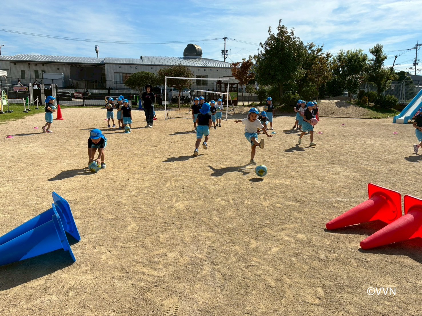 次に、的当て競争!コーンを狙ってキック!