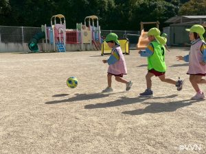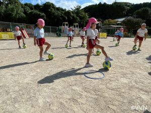 ボールを投げてキャッチしたり、ドリブルしたりいろんな場所でボールを扱いました!