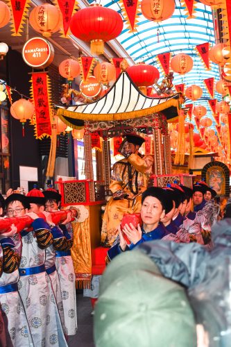 色鮮やかなランタンが街を彩る中、皇帝衣装に身を包んだ山口選手が登場。