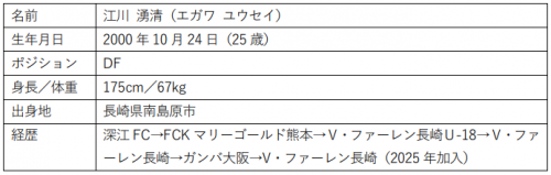 V・ファーレン長崎は、江川 湧清選手と明治安田J1百年構想リーグにおける契約を更新したことをお知らせいたします。引き続きクラブへのご声援をよろしくお願いします。