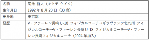V・ファーレン長崎は、菊池 啓太フィジカルコーチが2025シーズンをもって退任することが決まりましたので、お知らせいたします。