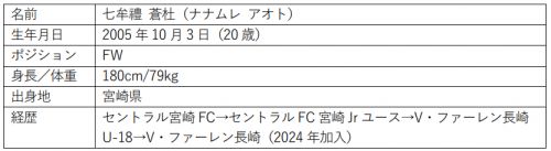 V・ファーレン長崎は、七牟禮 蒼杜選手が、育成型期限付き移籍しておりましたFC大阪より復帰することが決まりましたので、お知らせいたします。