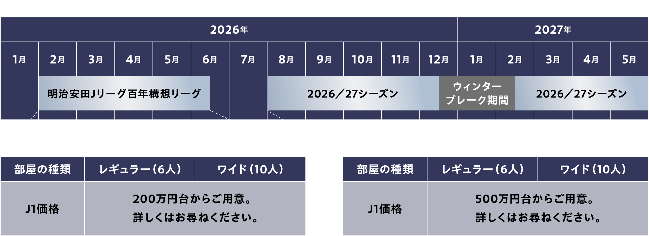| 年間利用可能日数 | 試合日のご利用に限ります。キックオフ2時間前~試合終了1時間後まで。 |