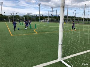 ゴールの4角を狙うことや、左右どちらにも蹴れるところにボールを置いたりと、キーパーとの駆け引きにも勝てるようにすることを意識しながらシュート練習を行いました!