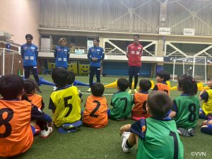 選手には子どもたちと一緒にゲームに参加してもらい、