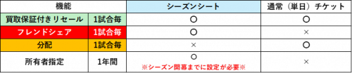 SEASONSEATの権利を1試合ごとに共有できる機能です。