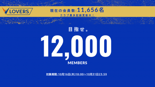 「目指せ!V-LOVERS12,000名達成キャンペーン」を実施することとなりましたのでお知らせいたします。