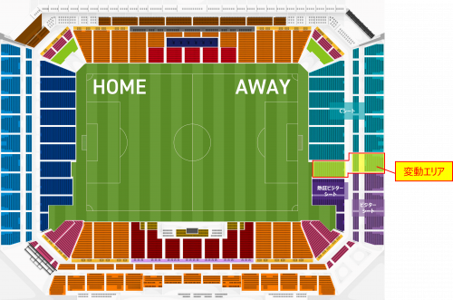 ※変動エリアを、熱狂ビジターシート・ビジターシートとして販売する場合も、既に購入されているビジターシート(指定席)の座席変更はできません