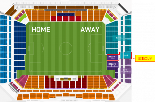 ※変動エリアを、熱狂ビジターシートとして販売する場合も、既に購入されているビジターシート(指定席)の座席変更はできません