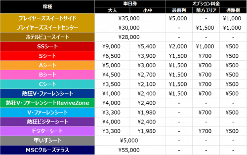 変動エリアは、 【熱狂ビジターシート】【Cシート】として追加販売を実施します。