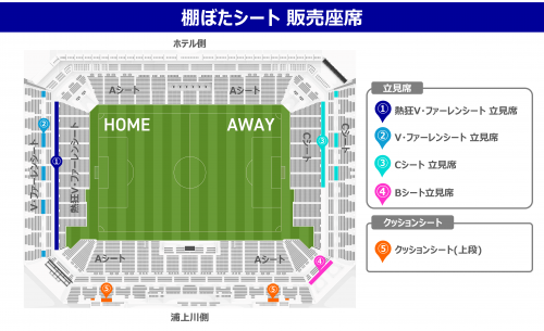 コンコースなどで立って観戦する立見席と段差席にクッション置き座って観戦するクッションシートの2種類を販売します。