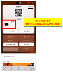 ※スタpayへの還元は即時となります(リセール処理完了後、長崎スタジアムシティアプリホーム画面のスタPAY残高をご確認ください)