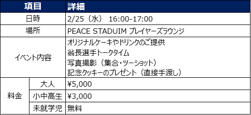 ※チームスケジュール等の事情により、すべての選手での実施をお約束するものではございません。事前にご了承いただけますようお願い申し上げます。