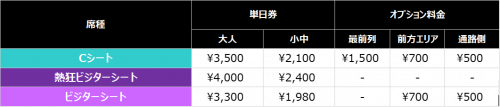 熱狂ビジターシート(自由席)をご購入いただく場合は、購入時に座席をご選択いただきチケットの購入をお願いいたします。